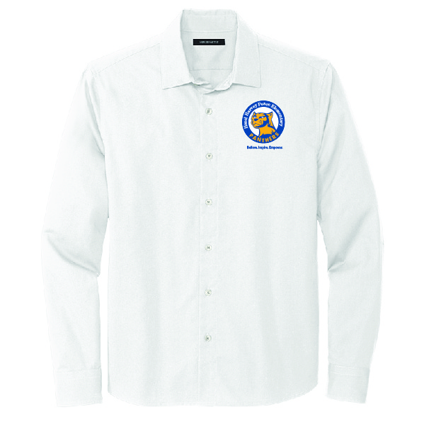 3.4-ounce, 56/36/8 cotton/poly/spandex end-on-end; With smart tailoring and a modern fit, this shirt will follow your every move, day or night. Topped with rimmed buttons and a back yoke seam, the solid fabric has a subtle, heathered look thanks to its end-on-end weave. (MM2000)