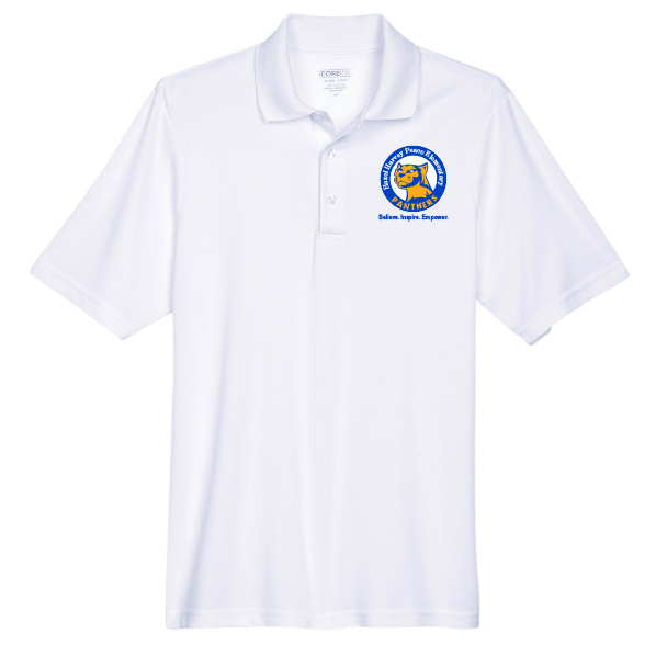 Description: CORE365 Men’s Origin Performance Piqué Polo with Royal Blue, White & Gold Logo. Logo is Embroidered on to Polos.